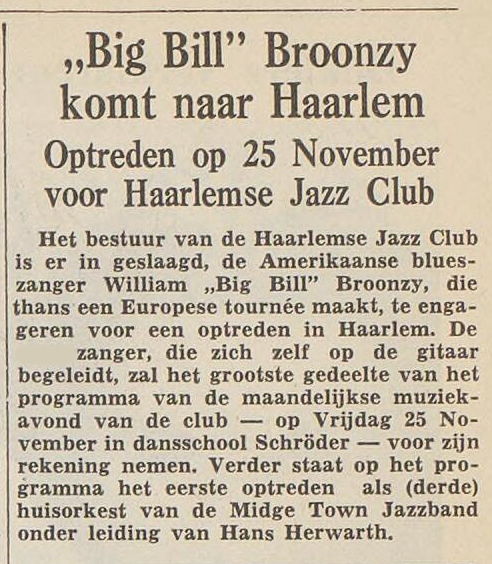 De Amerikaanse blueszanger Big Bill Broonzy geeft een optreden in onze dansschool!